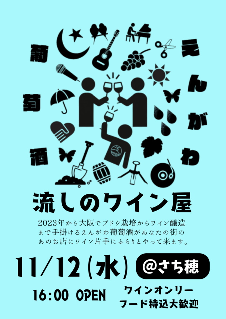 【イベント】11.12wed 流しのワイン屋(河内長野市) 2025年10月29日 最終更新日時 : 2025年10月29日 engawawine 気軽にワインを楽しんでいただける一夜かぎりの間借りワインバーです。完売済みのワインや初年度リリースのワインをグラスでご提供いたします。場所:河内長野市長野町6-3 @さち穂 \ 最新情報をチェック /