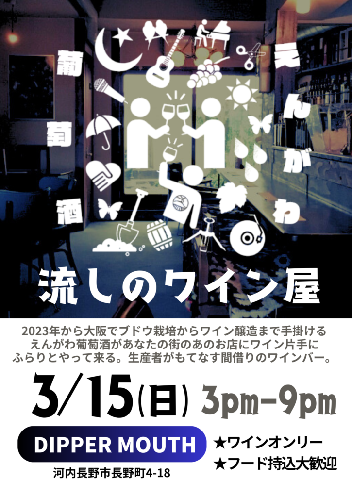 【イベント】2026.3.15 sun 流しのワイン屋(河内長野市) 2026年2月17日 最終更新日時 : 2026年2月17日 engawawine 今年に入ってリリースしたばかりのワインをグラスでお楽しみいただけます。今回は富田林のイタリアンdacciaさんのデリBOX(ワインとよく合うお惣菜)をご用意します。ご予約・お問い合わせはengawa.wine@gmail.comまで。 \ 最新情報をチェック /
